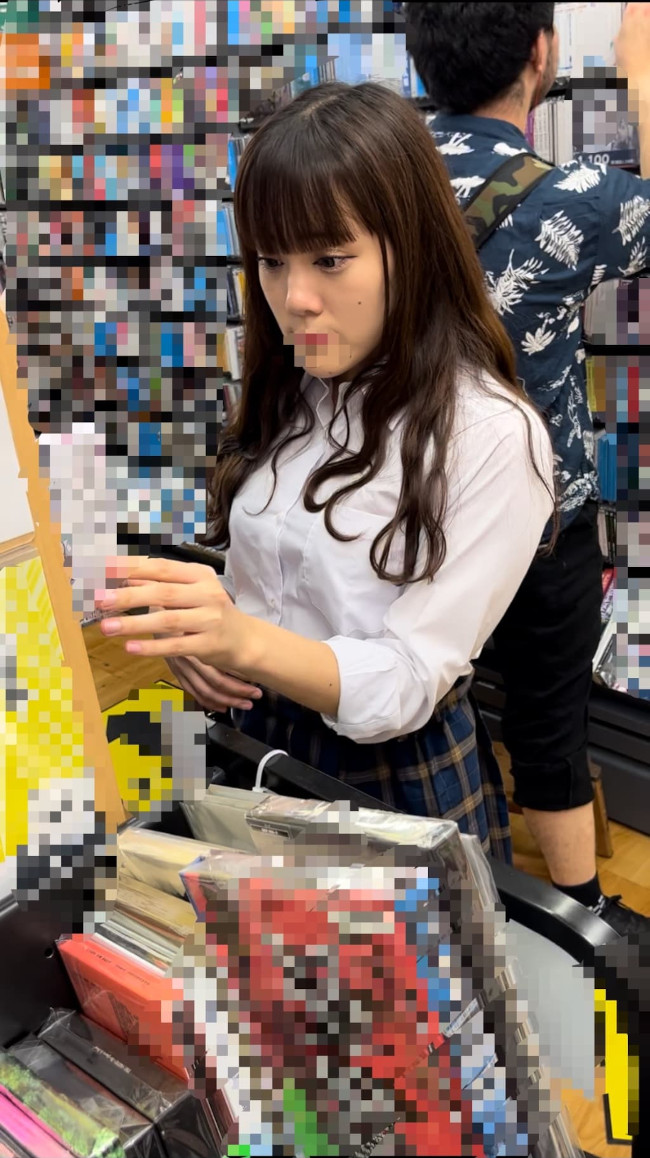 本屋さんの店内で本を物色するところを密かに、且つ大胆にパンチラ(否マンチラ)撮影。